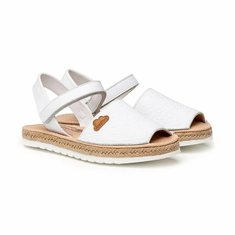 Abarcas menorquinas Niña Piel Grabada Plantilla Acolchada Velcro 226 Blanco, de Angelitos