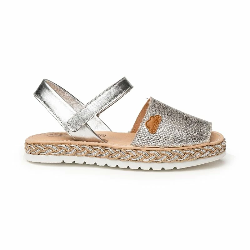 Abarcas Menorquinas Niña Piel Y Saco Metalizado Plantilla Acolchada Velcro 223 Plata, de Angelitos