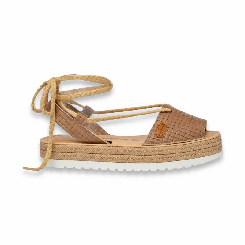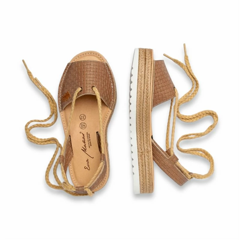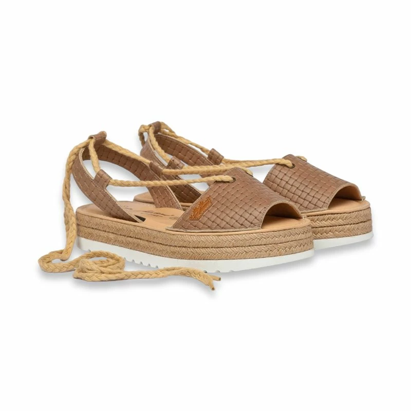 Abarcas Menorquinas Plataforma Mujer Piel Grabada Cuerdas Y Plantilla Acolchada 1249 Taupe, de Eva Mañas