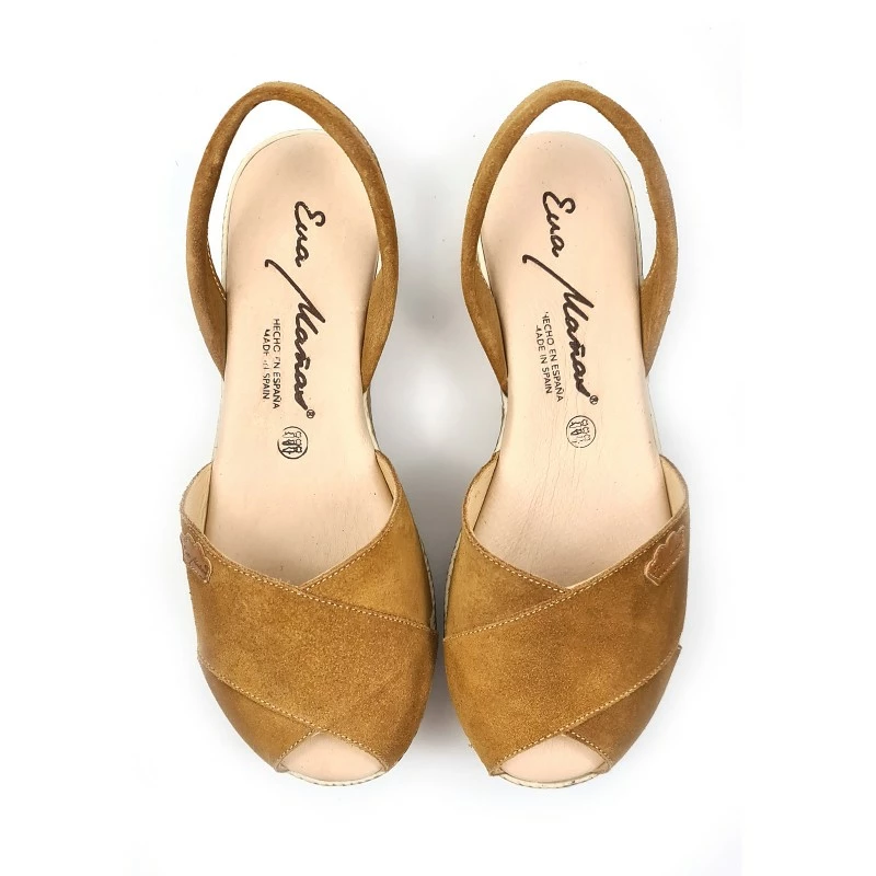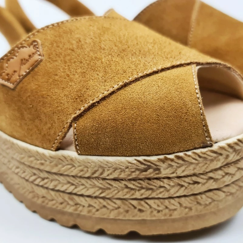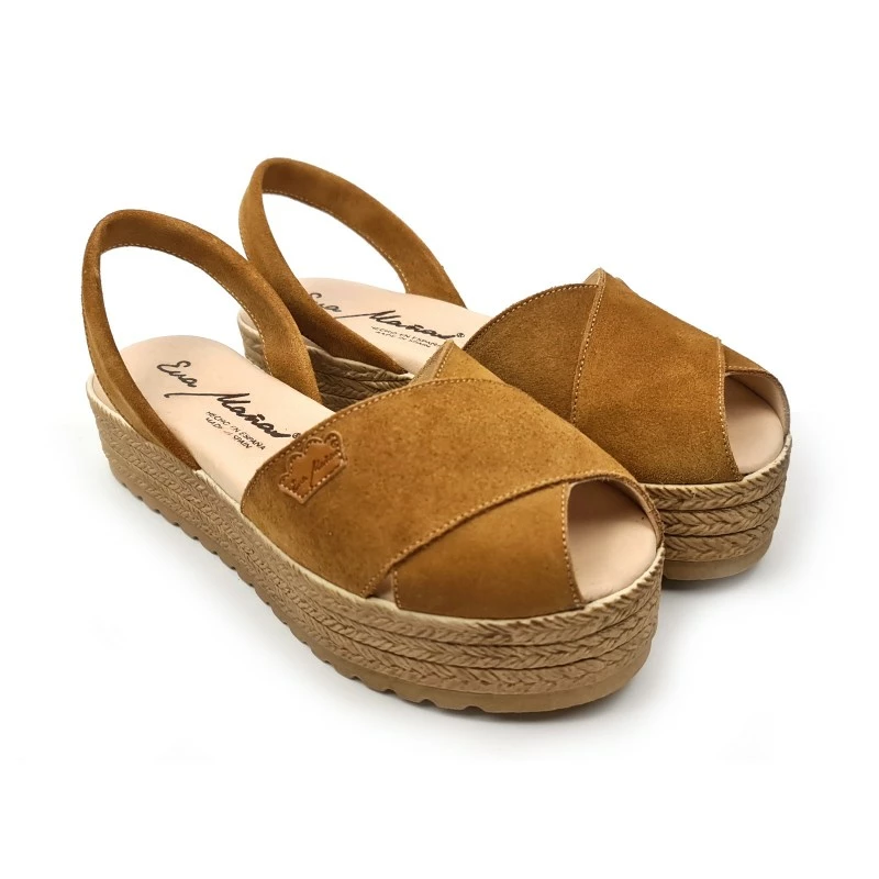 Avarcas Menorquinas Cruzadas Mujer Piel Ante Plataforma Plantilla Acolchada 1257 Cuero, de Eva Mañas