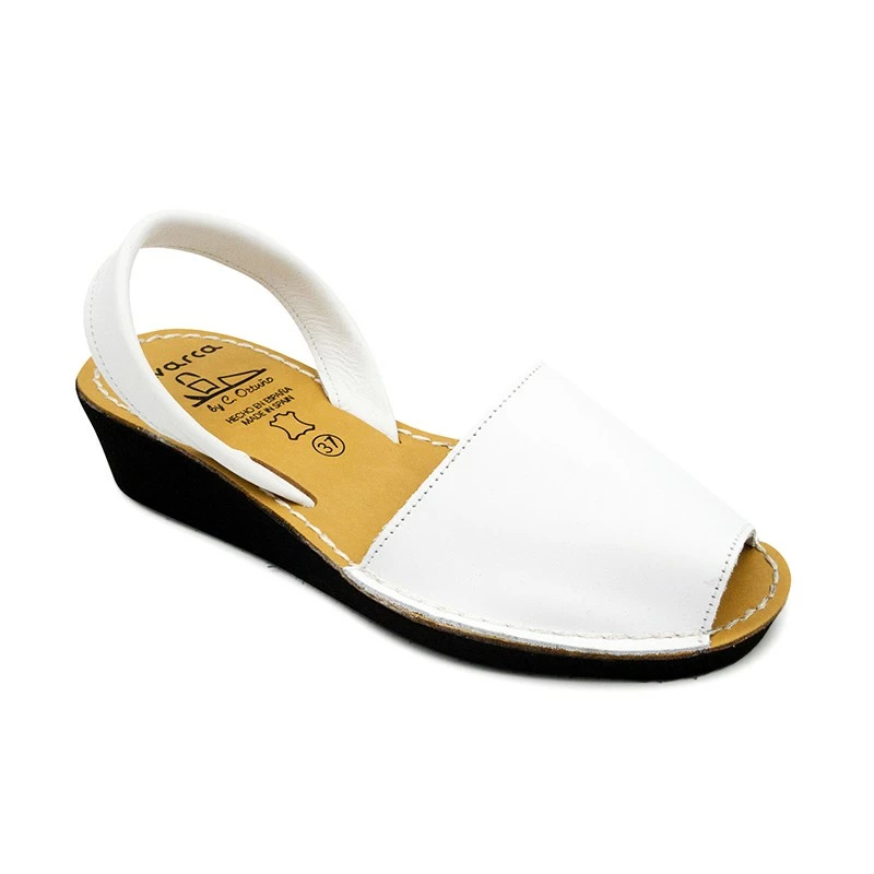 Avarcas Menorquinas Mujer Piel Básica Cuña 211ME Blanco, de C. Ortuño