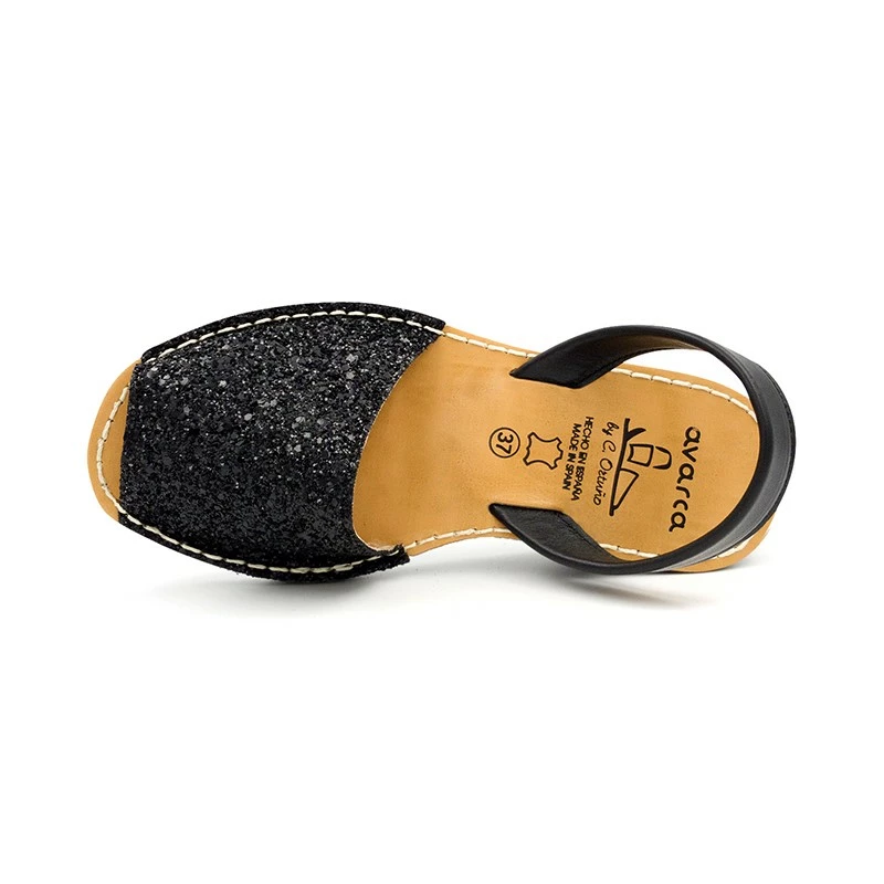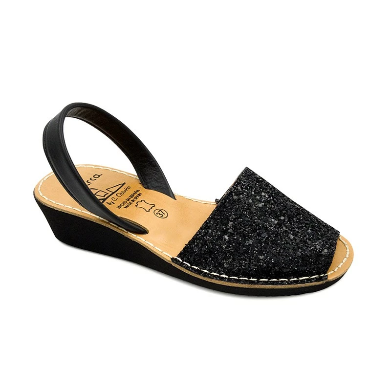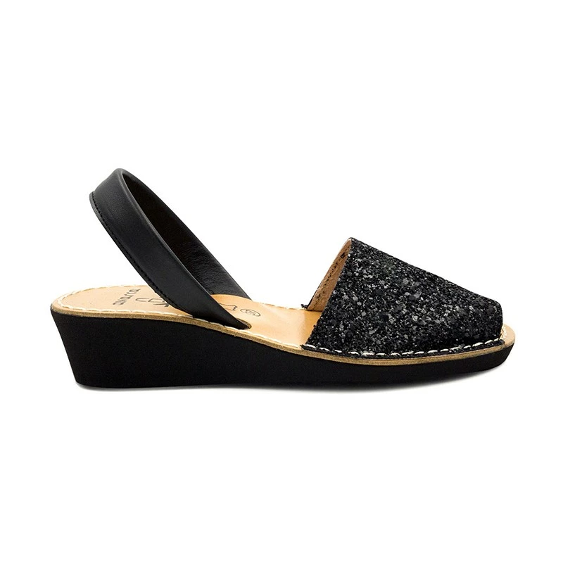 Avarcas Menorquinas Mujer Piel Cuña Purpurina 1275 Negro, de C. Ortuño