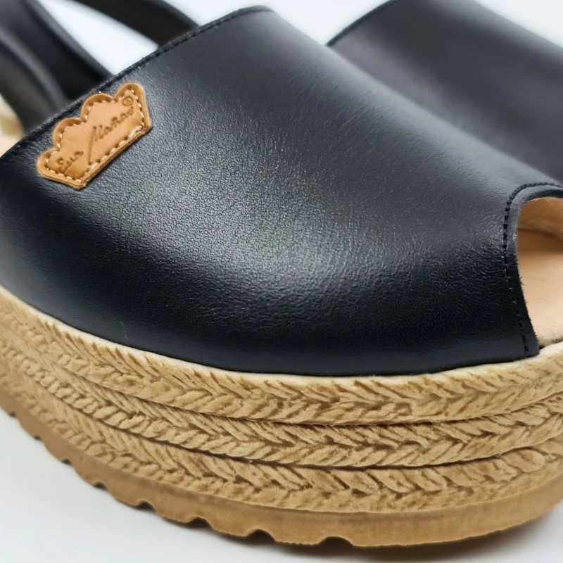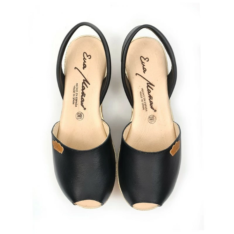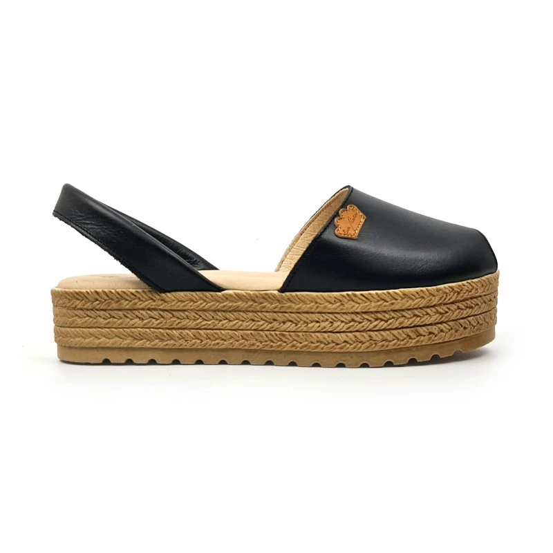 Avarcas Menorquinas Mujer Piel Plataforma Plantilla Acolchada 1258 Negro, de Eva Mañas