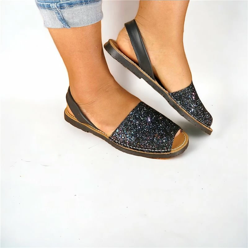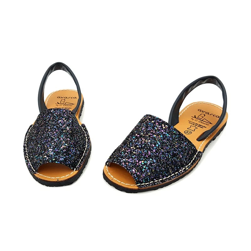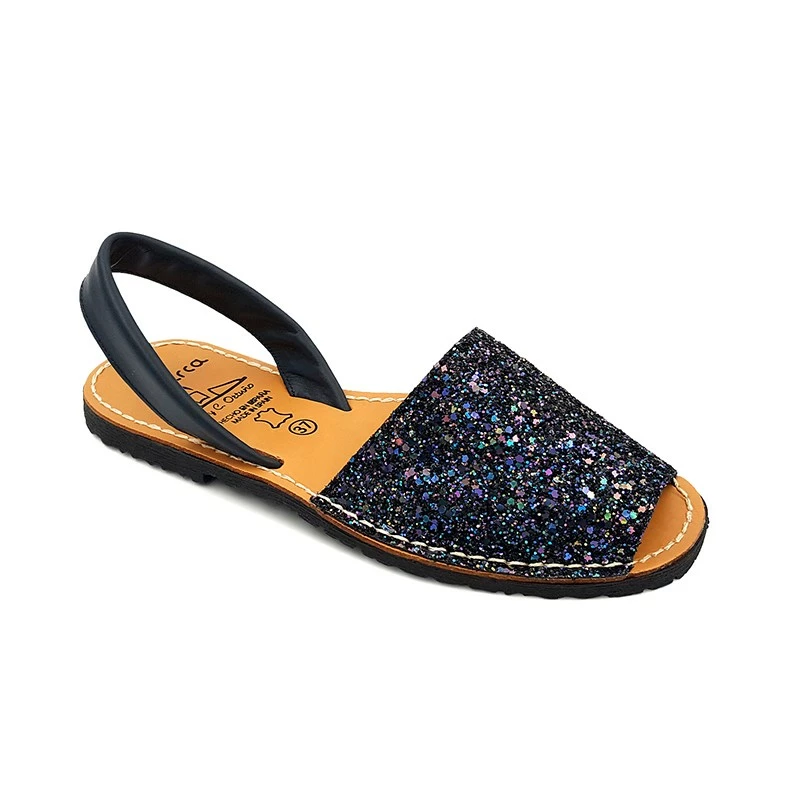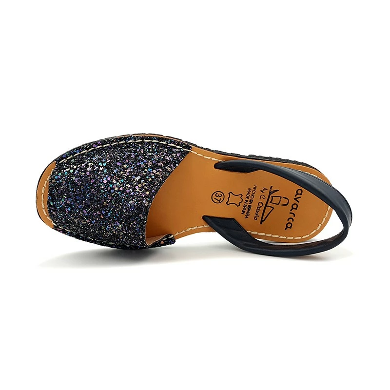 Avarcas Menorquinas Mujer Piel Purpurina 275GLI-1 Marino, de C. Ortuño