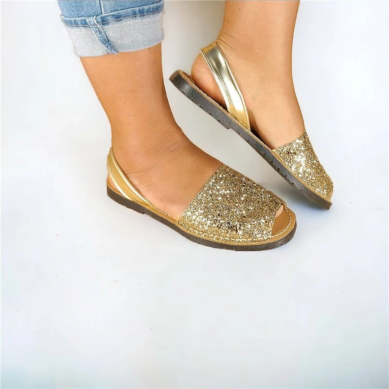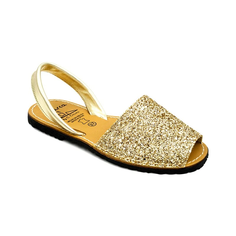 Avarcas Menorquinas Mujer Piel Purpurina 275GLI-1 Oro, de C. Ortuño