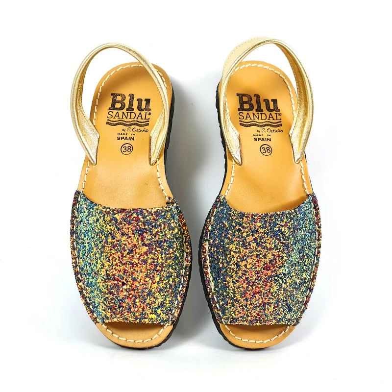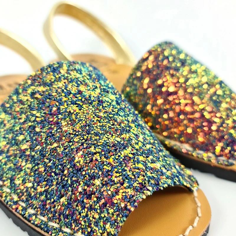 Avarcas Menorquinas Mujer Piel Purpurina Holográfica 275 Arcoiris, de C. Ortuño
