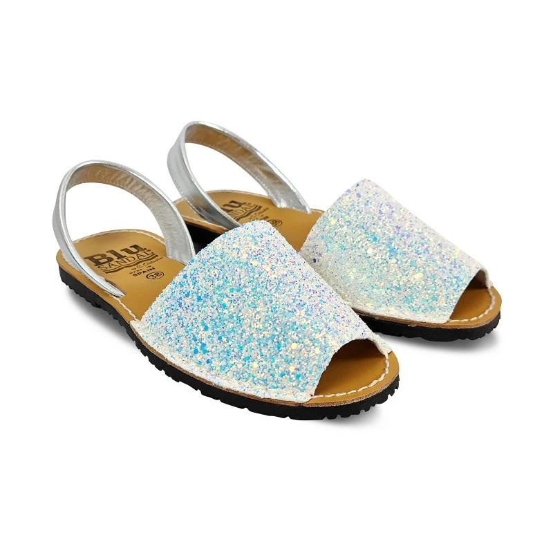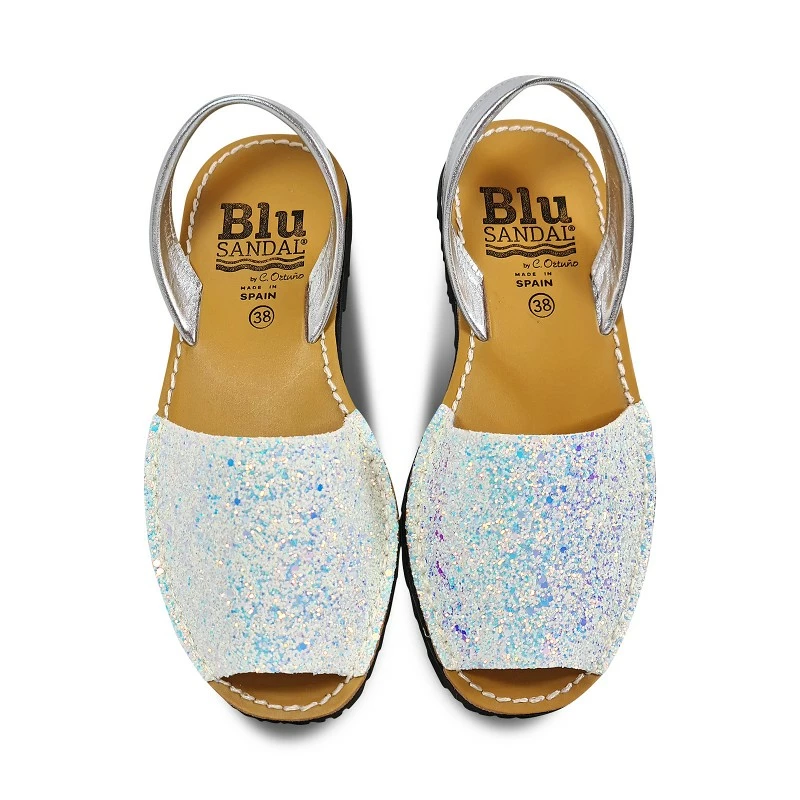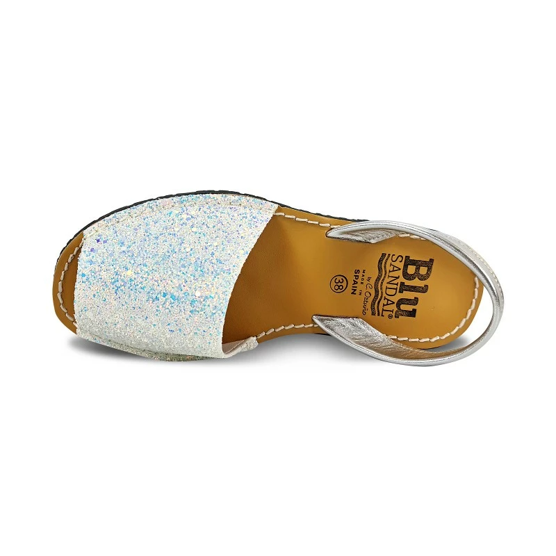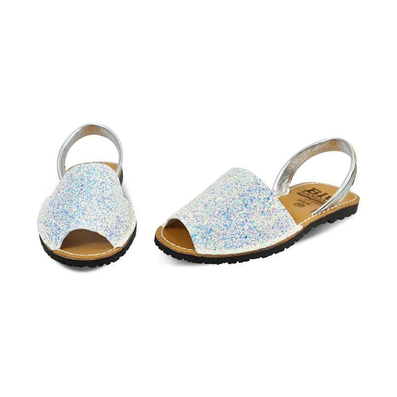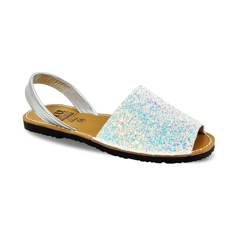 Avarcas Menorquinas Mujer Piel Purpurina Holográfica 275 Nieve, de C. Ortuño