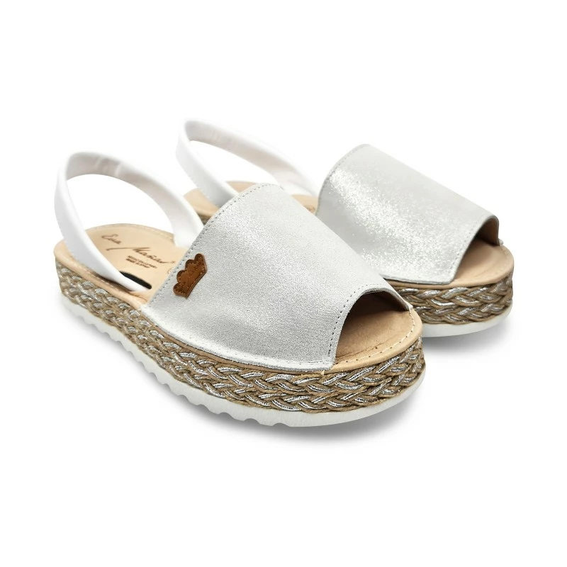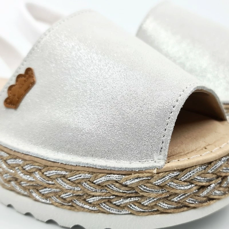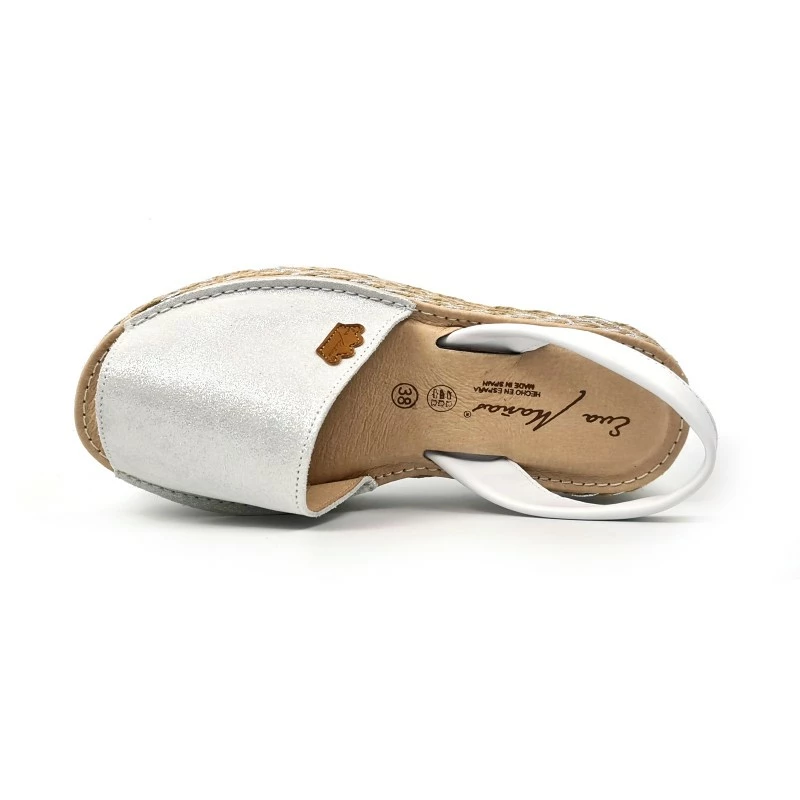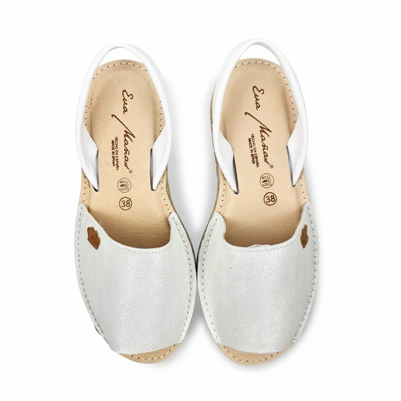 Avarcas Menorquinas Mujer Piel Purpurina Plataforma Plantilla Acolchada 1251 Blanco, de Eva Mañas