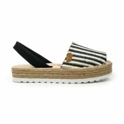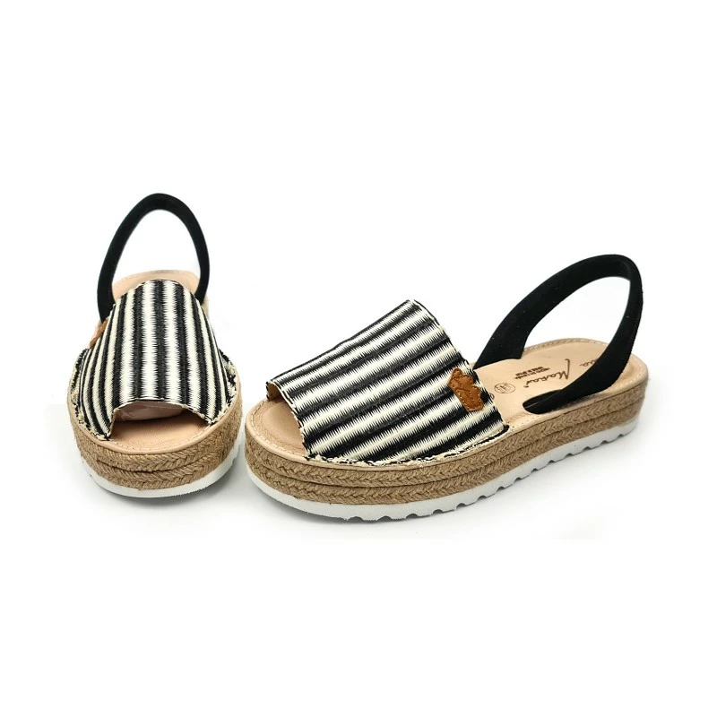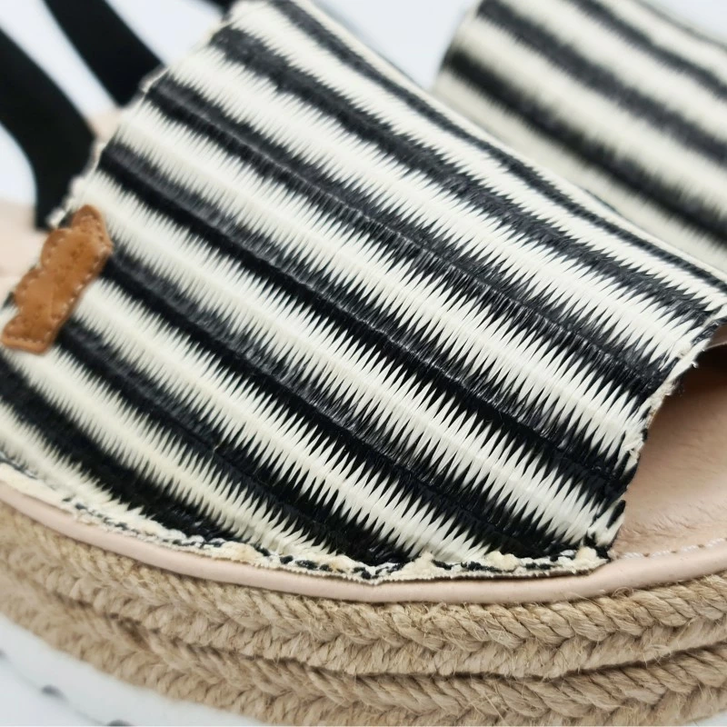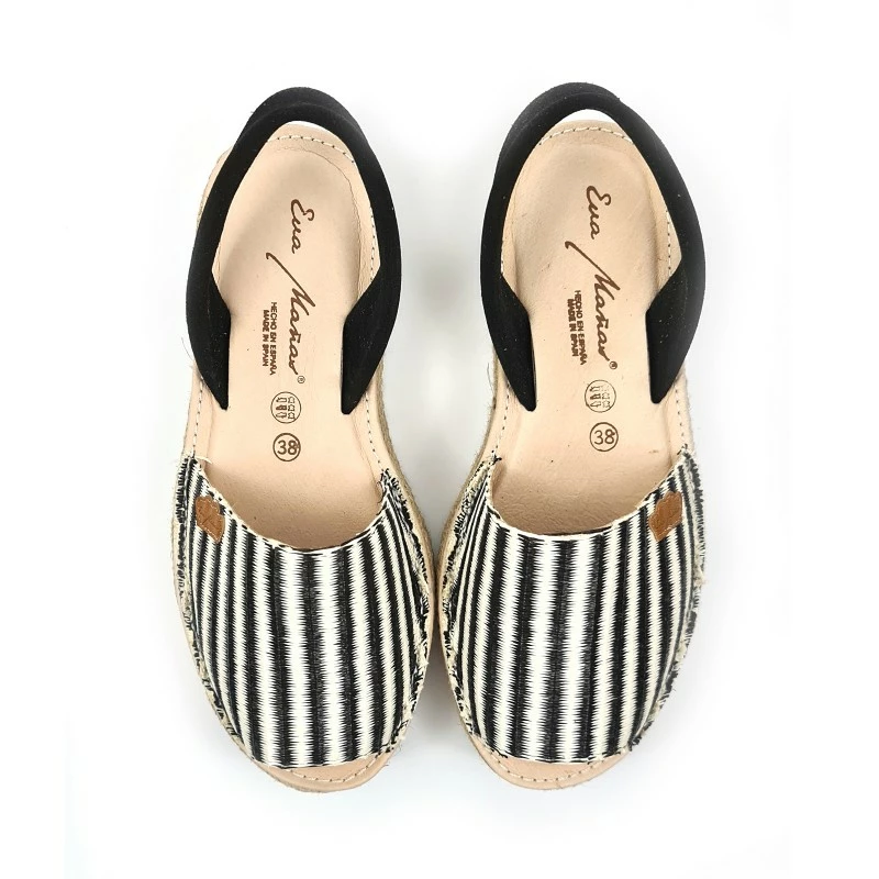 Avarcas Menorquinas Mujer Piel Y Rafia Plataforma Plantilla Acolchada 1255 Negro, de Eva Mañas