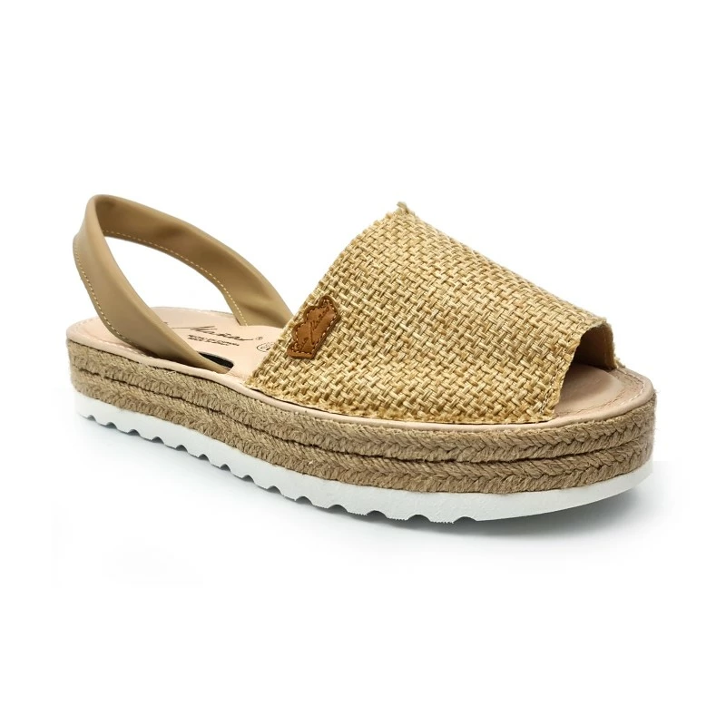 Avarcas Menorquinas Mujer Piel Y Saco Plataforma Plantilla Acolchada 1250 Camel, de Eva Mañas