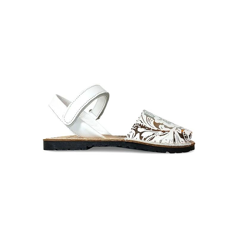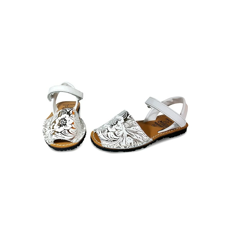 Avarcas Niña Piel Grabado Plata 205 Blanco, de C. Ortuño