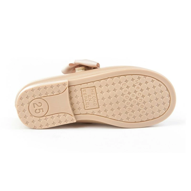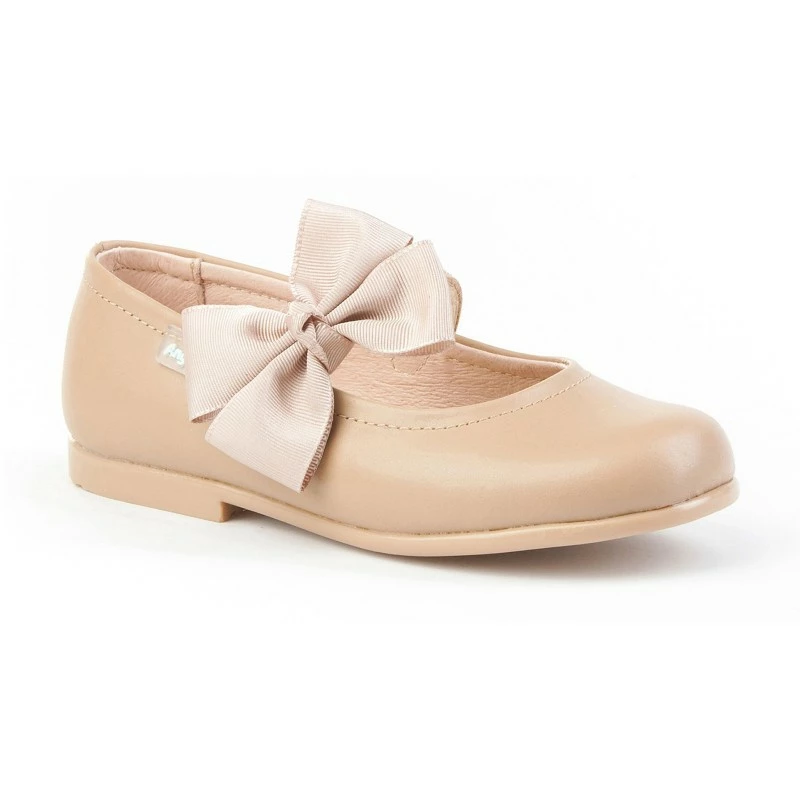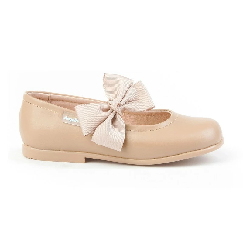 Bailarinas Colegiales Infantil Niña Piel Velcro Lacito 519 Camel, de Angelitos