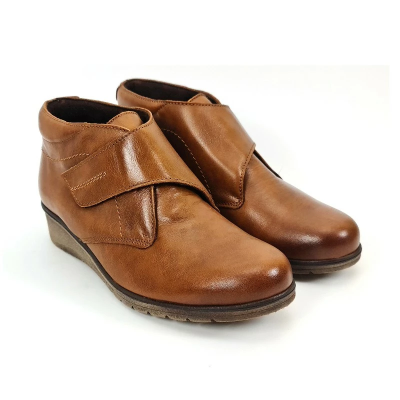 Botines Cómodos Mujer Piel Cuña Velcro Plantilla Extraíble 70244 Cuero, de Tupié