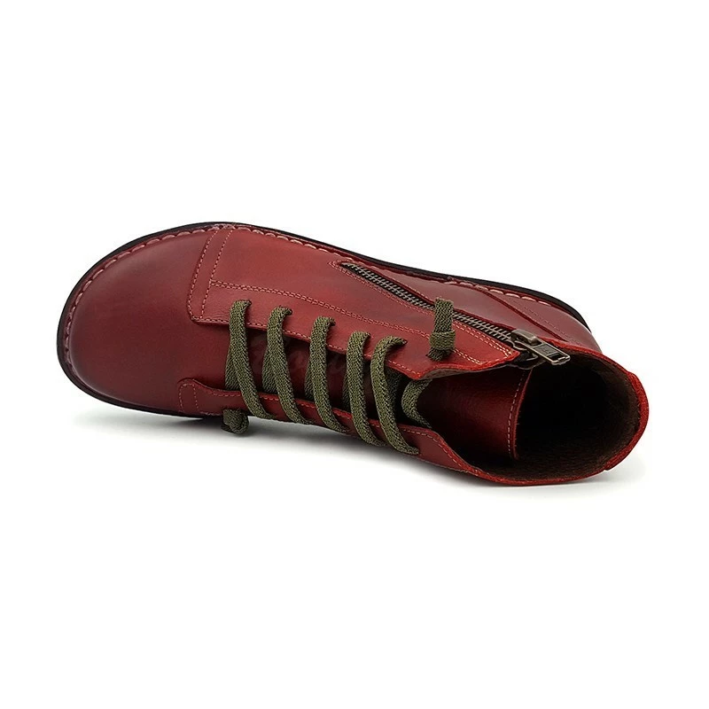 Botines Planos Mujer Piel Cordón Elastico 3012 Burdeos, de Boleta Shoes