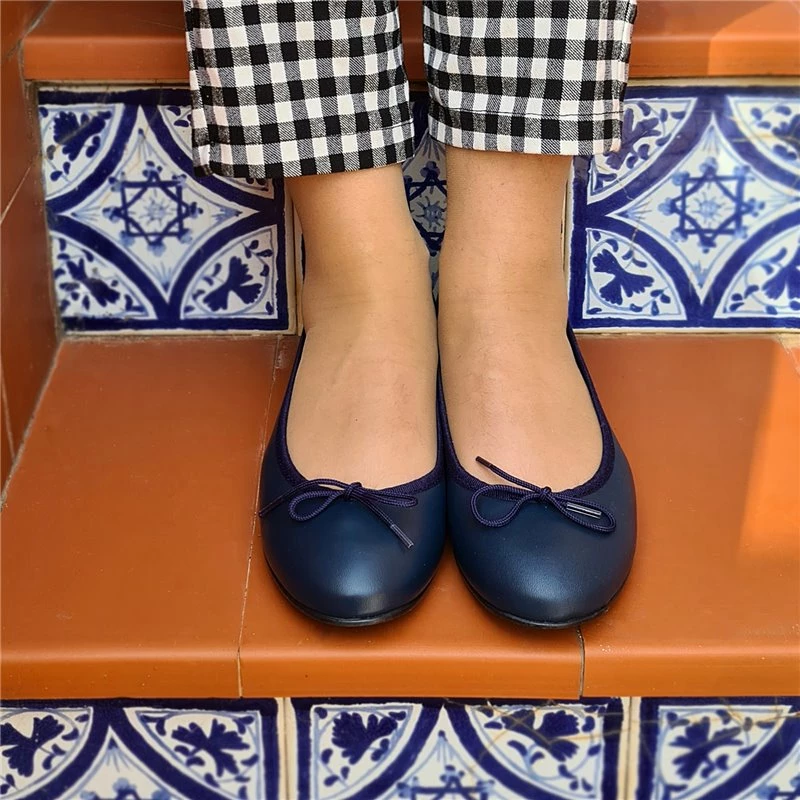 Manoletinas Planas Mujer Piel Lacito 7000 Marino, de Casual