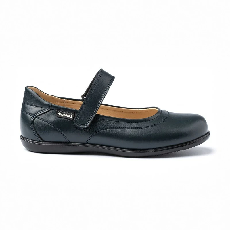 Merceditas Colegiales Niña Piel Napa Velcro 460 Marino, de Angelitos