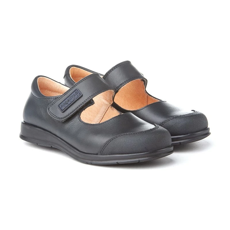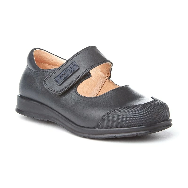Merceditas Colegiales Niña Piel Puntera Refozada Velcro 463 Marino, de Angelitos