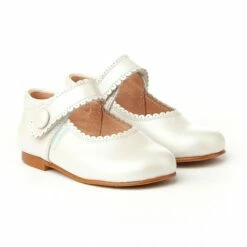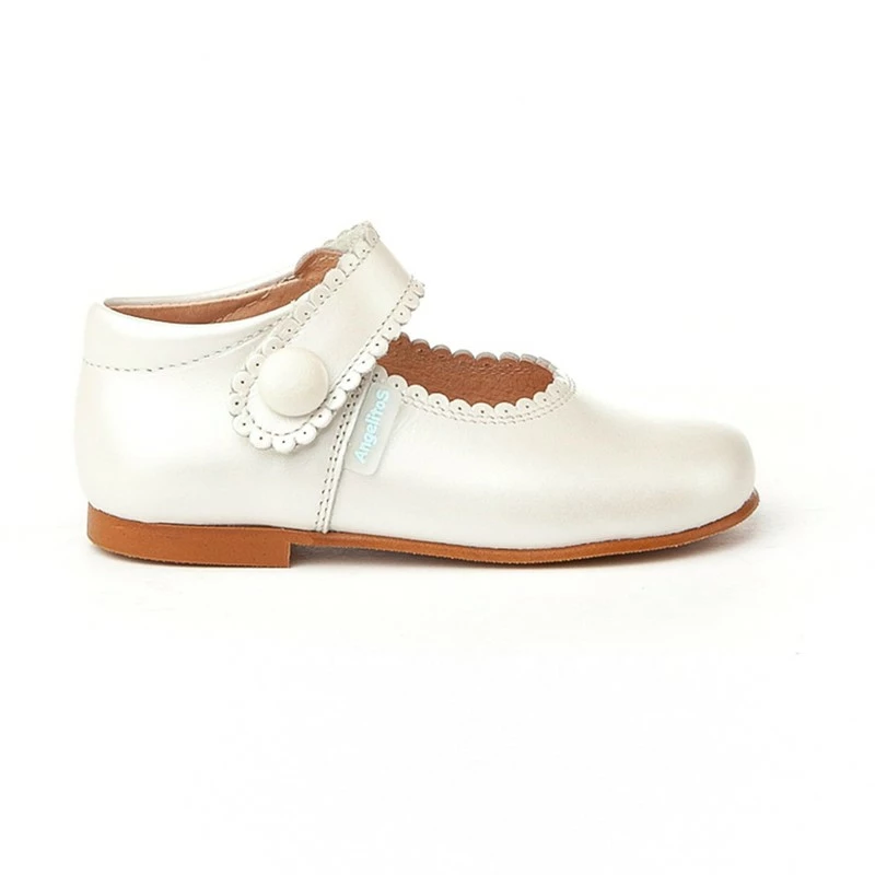 Merceditas Niña Piel Nacarada Velcro 1502 Beige, de Angelitos
