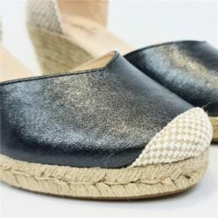 Alpargatas Valencianas Cuña Baja Mujer Piel Y Textil Plantilla Acolchada 295 Negro, De Amelie