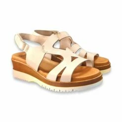 Sandalias Cuña Baja Mujer Piel Velcro Plantilla Acolchada 2898 Multimetal, De Blusandal