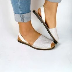 Avarcas Menorquinas Mujer Piel Purpurina 275GLI-1 Blanco, De C. Ortuño