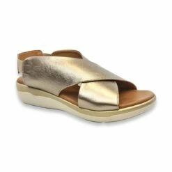 Sandalias Cruzadas Comfort Cuña Baja Mujer Piel Plantilla Acolchada Elástico 288 Platino, De Amelie