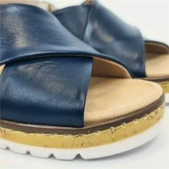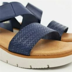 Sandalias Cuña Baja Mujer Piel Grabada Plantilla Acolchada Velcro 22725 Marino, De Blusandal