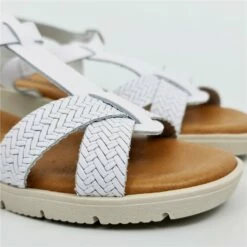 Sandalias Cuña Baja Mujer Piel Grabada Plantilla Acolchada Velcro 22725 Blanco, De Blusandal
