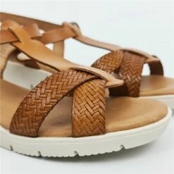 Sandalias Cuña Baja Mujer Piel Grabada Plantilla Acolchada Velcro 22725 Cuero, De Blusandal
