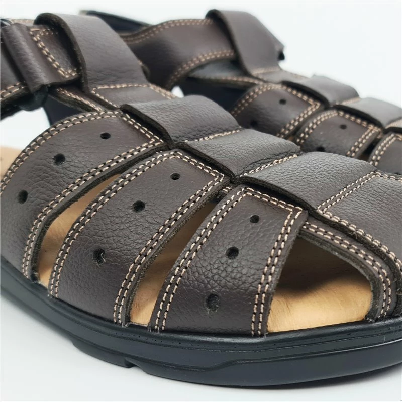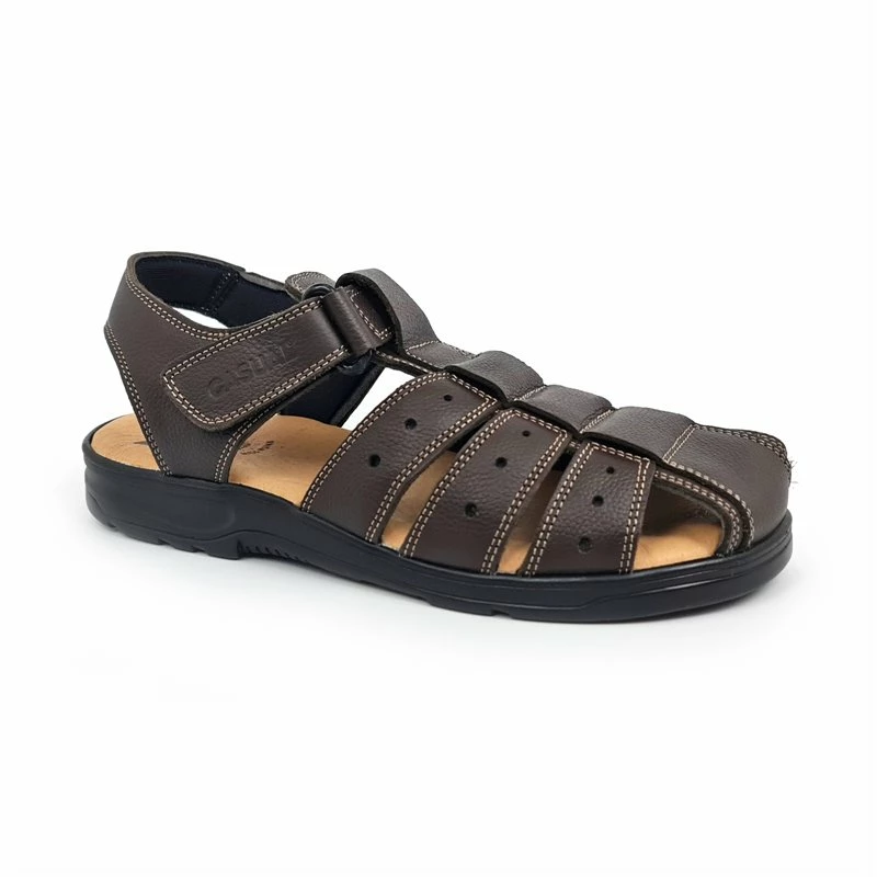 Sandalias Californianas Hombre Piel Velcro Ajustable 37006 Marrón, de Morxiva / Casual