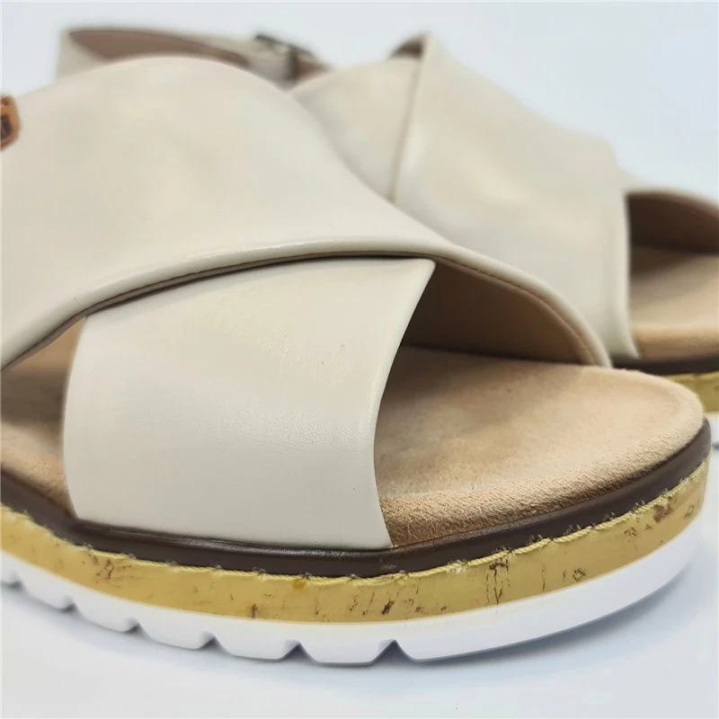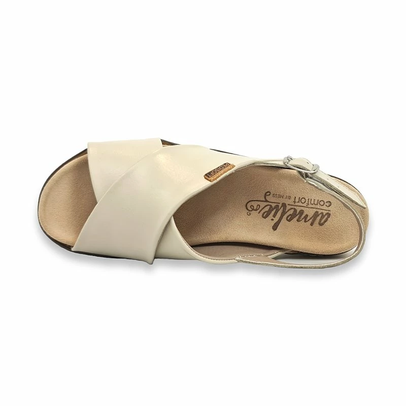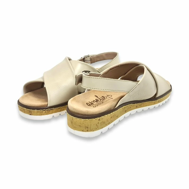 Sandalias Cruzadas Mujer Piel Cuña Baja Plantilla Extraible 1206 Beige, de Amelie