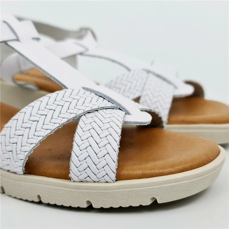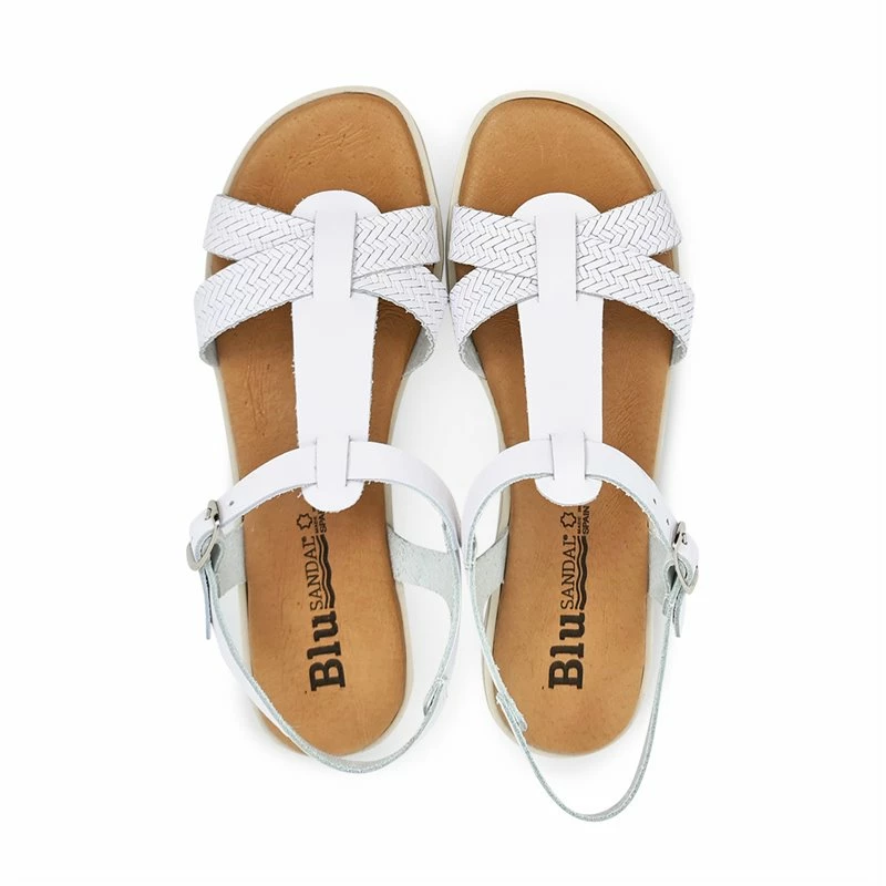 Sandalias Cuña Baja Mujer Piel Grabada Plantilla Acolchada Hebilla 22100 Blanco, de Blusandal