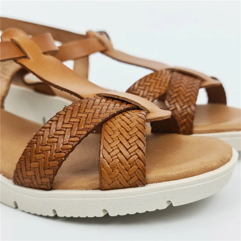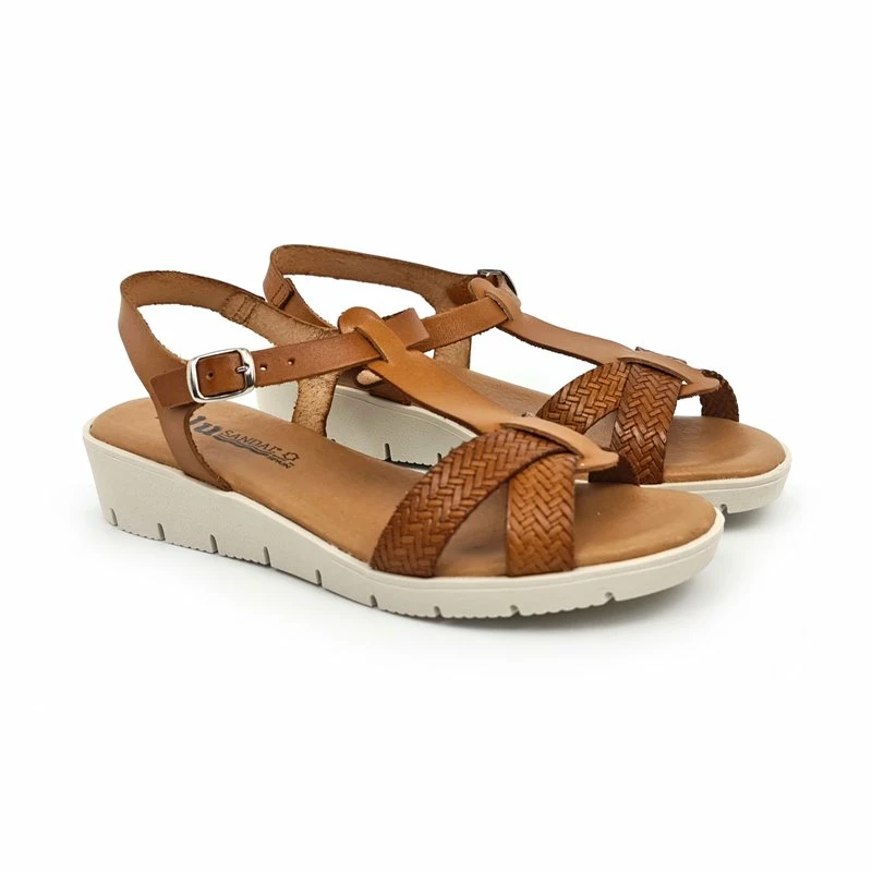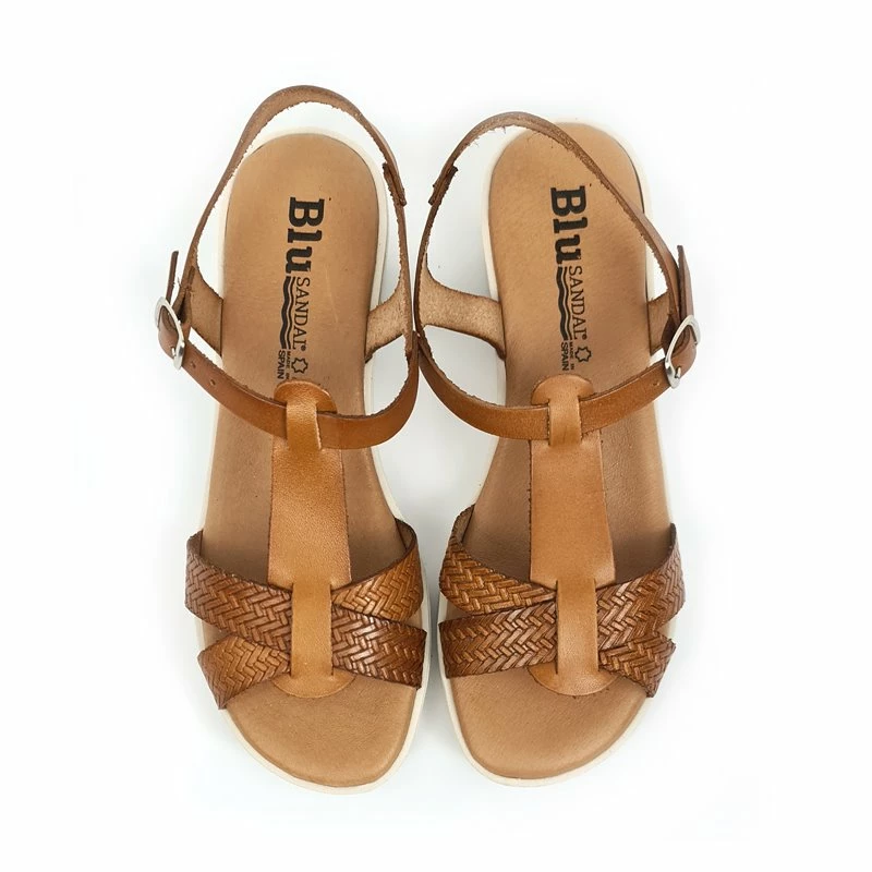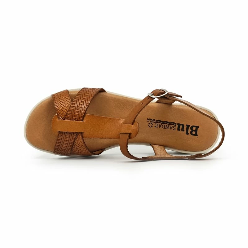 Sandalias Cuña Baja Mujer Piel Grabada Plantilla Acolchada Hebilla 22100 Cuero, de Blusandal
