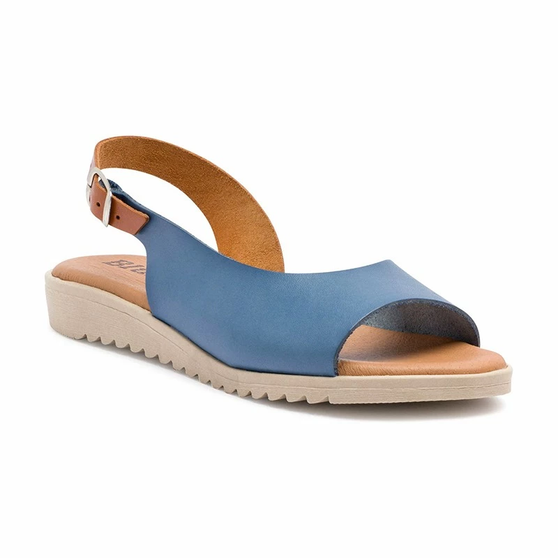 Sandalias Cuña Baja Mujer Piel Plantilla Acolchada 1115 Azul, de Blusandal