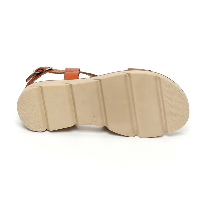 Sandalias Cuña Baja Mujer Piel Plantilla Acolchada 166 Cuero, de Blusandal