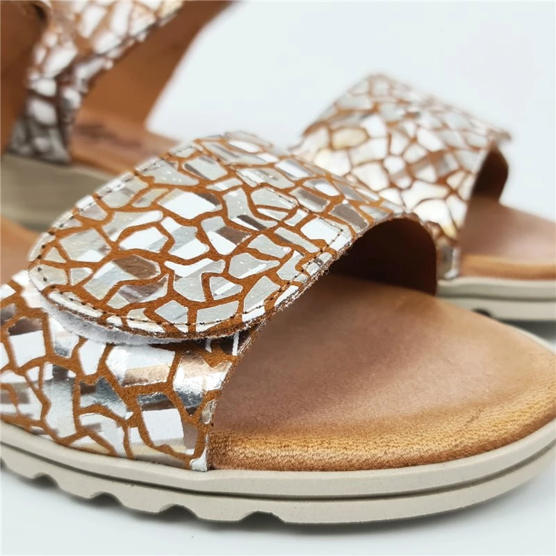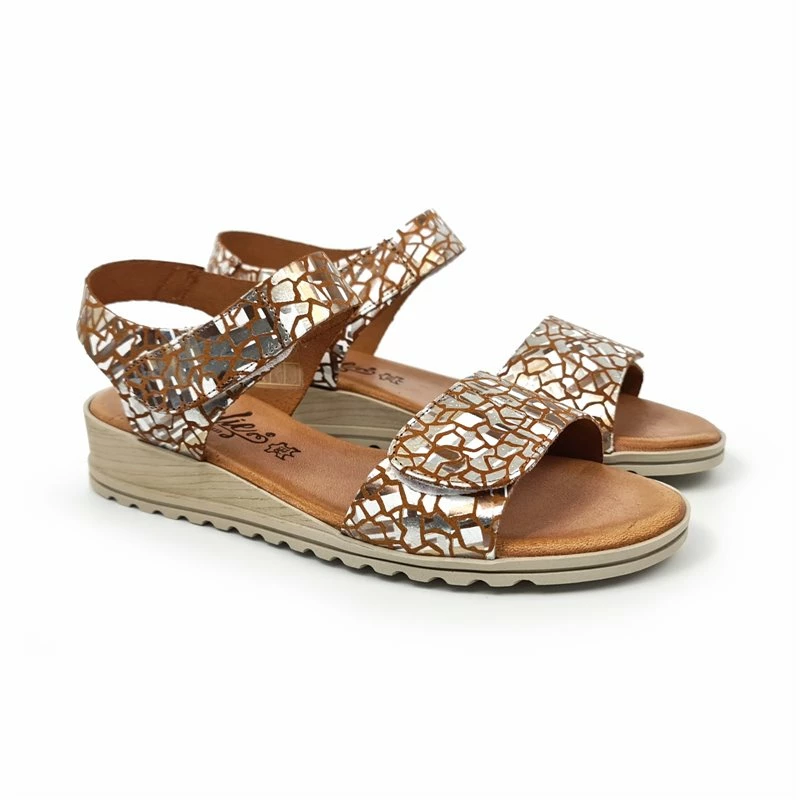 Sandalias Cuña Baja Mujer Piel Plantilla Acolchada Velcro 132 Cuero, de Amelie