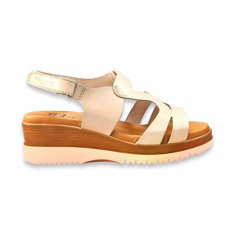 Sandalias Cuña Baja Mujer Piel Plantilla Acolchada Velcro 62309 Hielo, de Blusandal