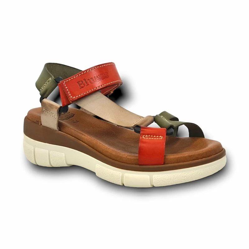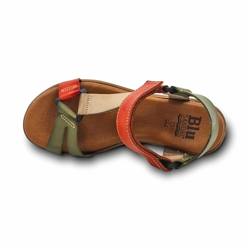 Sandalias Cuña Mujer Piel Velcro Plantilla Acolchada 54322 Verde, de Blusandal