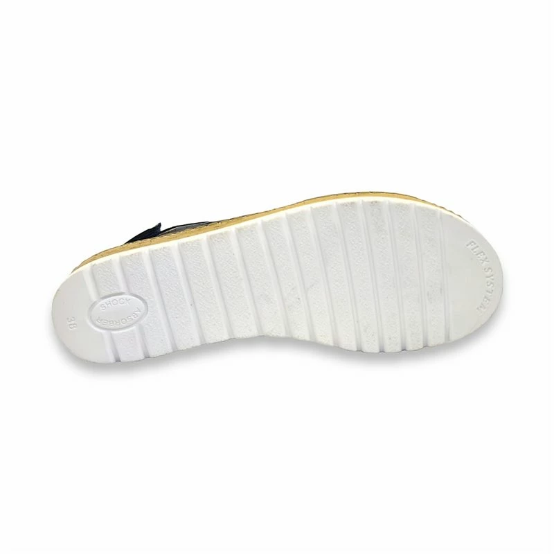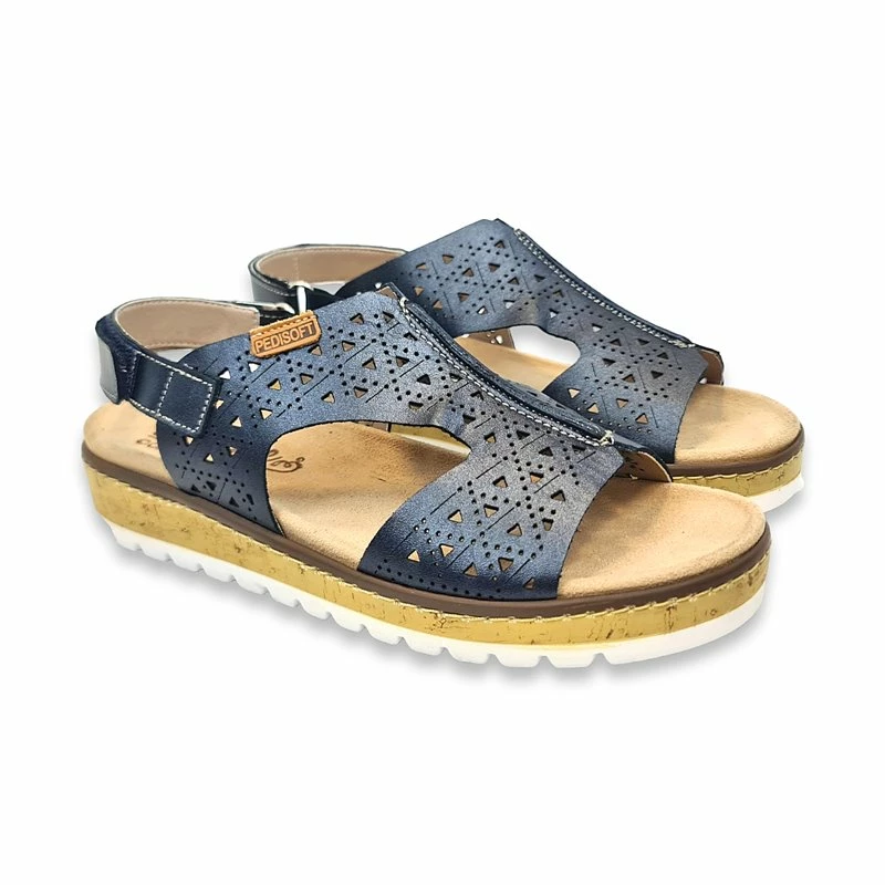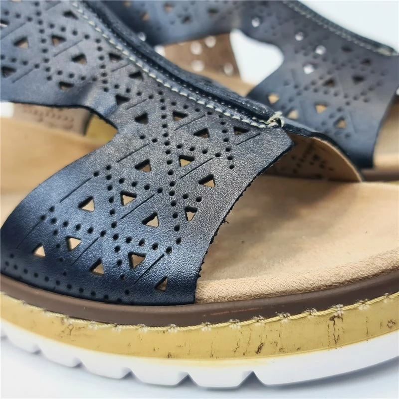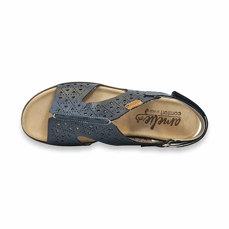 Sandalias Mujer Piel Calada Cuña Baja Plantilla Extraible Y Velcro 1211 Marino, de Amelie