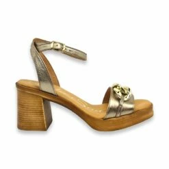 Sandalias Mule Tacón Medio Mujer Piel Plantilla Acolchada Cadena 2138 Platino, de Blusandal