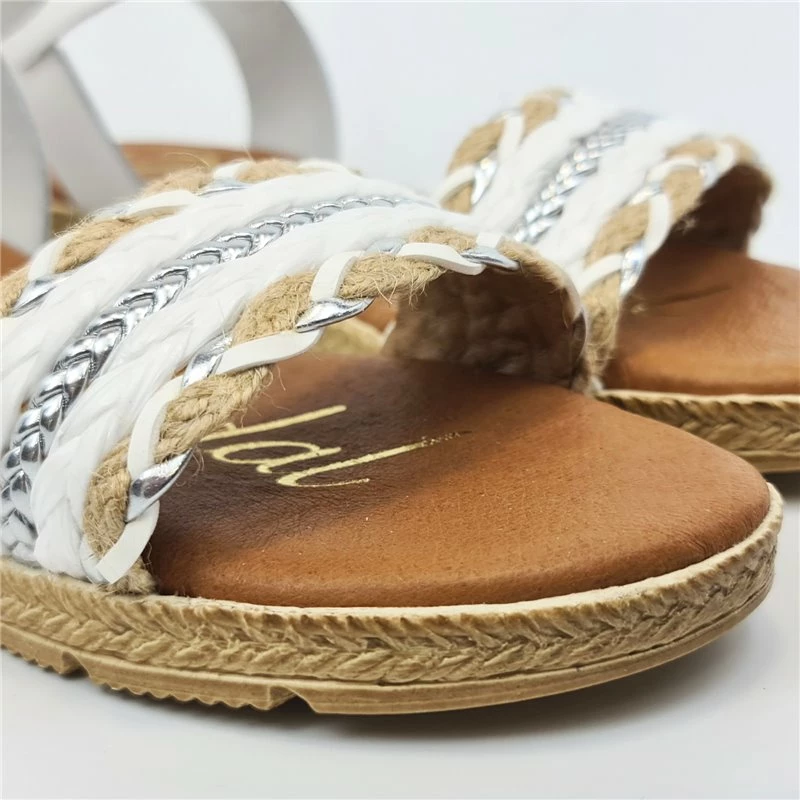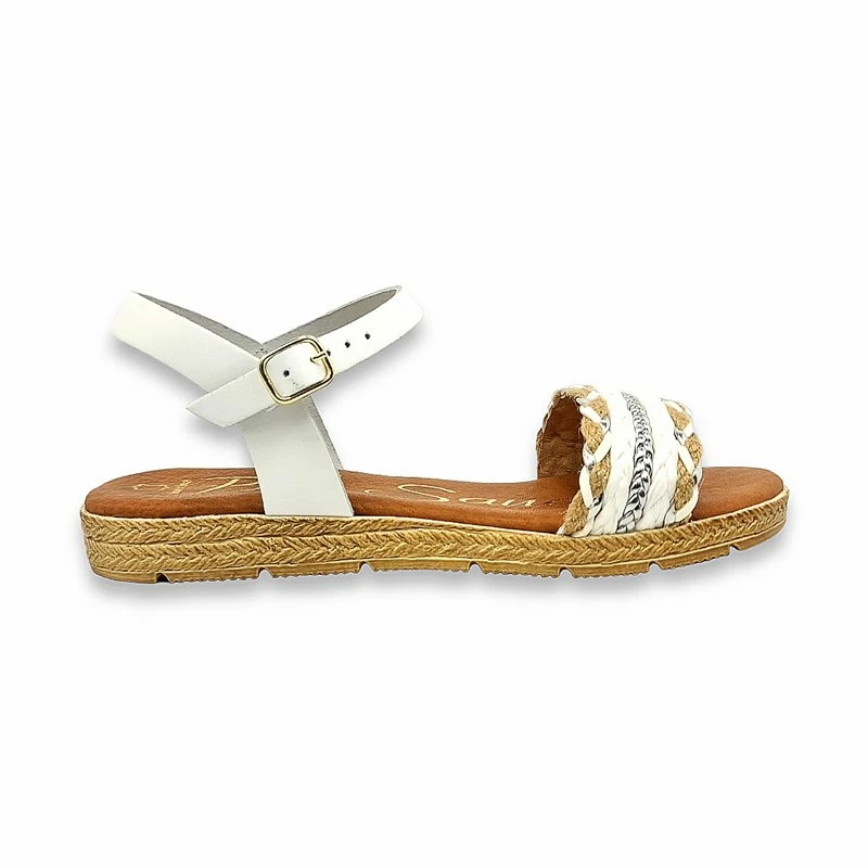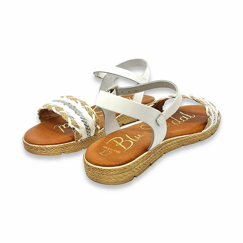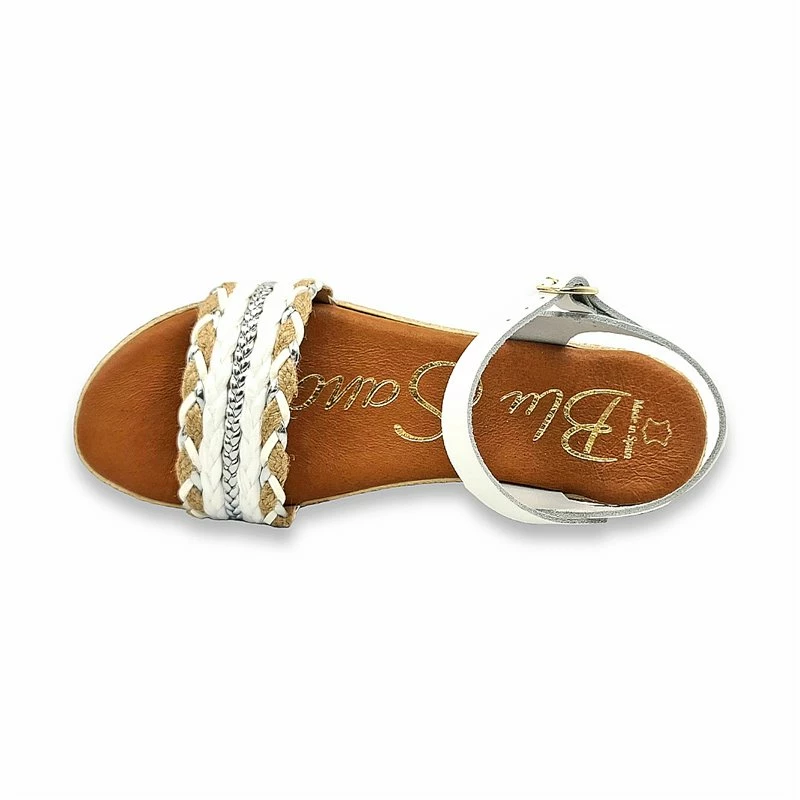 Sandalias Planas Mujer Piel Y Textil Hebilla Y Plantilla Acolchada 1610 Blanco, de Blusandal