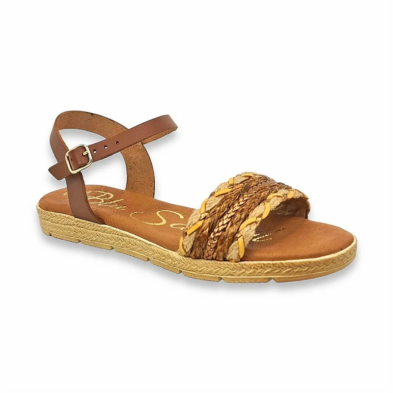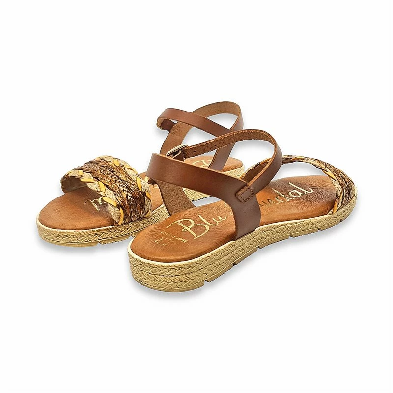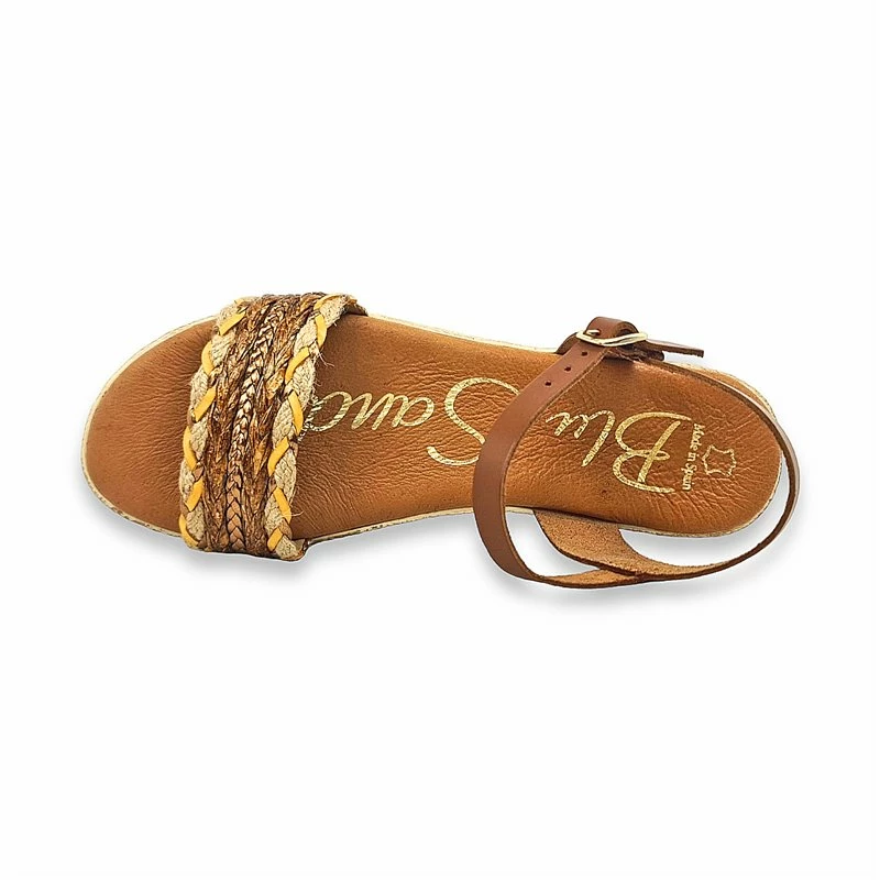 Sandalias Planas Mujer Piel Y Textil Hebilla Y Plantilla Acolchada 1610 Cuero, de Blusandal