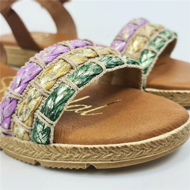 Sandalias Planas Mujer Piel Y Textil Hebilla Y Plantilla Acolchada 1610 Multicolor, de Blusandal