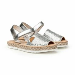 Abarcas Menorquinas Niña Piel Y Lentejuelas Plantilla Acolchada Velcro 224 Platino, De Angelitos