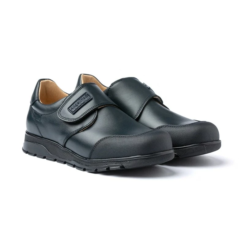 Zapatos Colegiales Niño Piel Puntera Reforzada Velcro 453 Marino, de Angelitos
