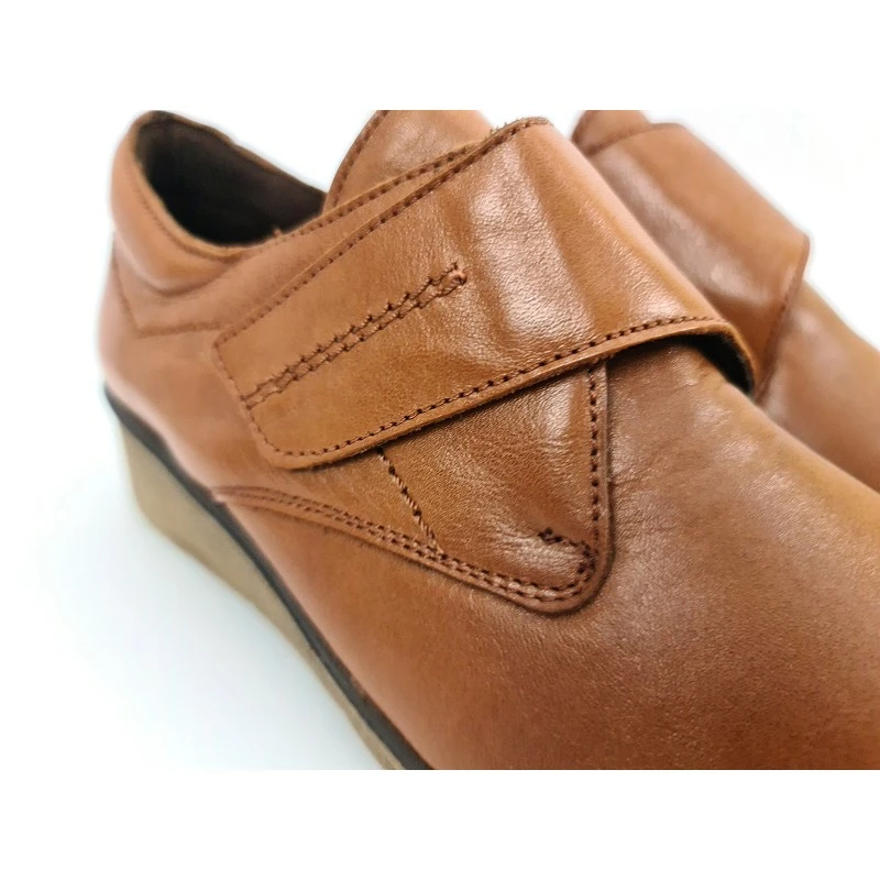 Zapatos Cómodos Mujer Piel Cuña Velcro Plantilla Extraíble 70243 Cuero, de Tupié