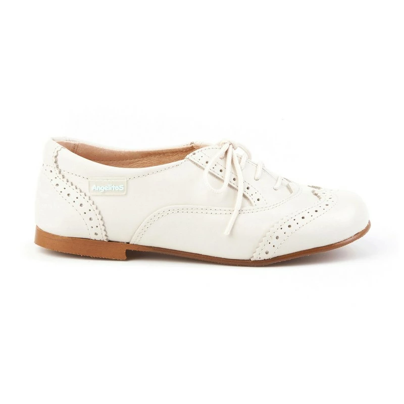 Zapatos Oxford Colegiales Infantil Niño Piel Cordones 1394 Beige, de Angelitos