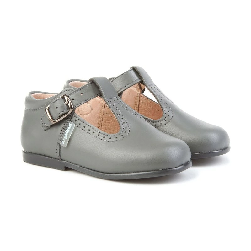 Zapatos Pepitos Colegiales Infantil Niño Niña Piel Hebilla 503 Gris, de Angelitos