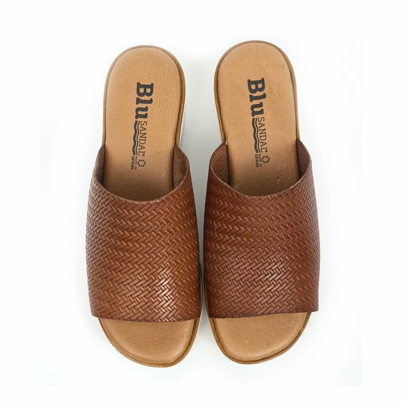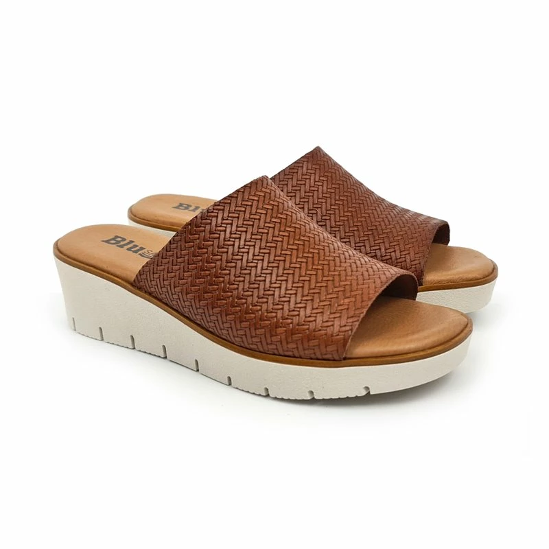 Zuecos Cuña Baja Mujer Piel Grabada Punta Abierta Plantilla Acolchada 22802 Cuero, de Blusandal