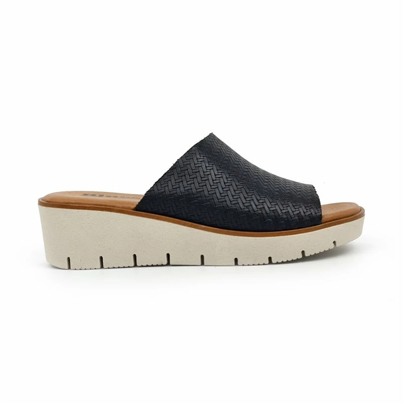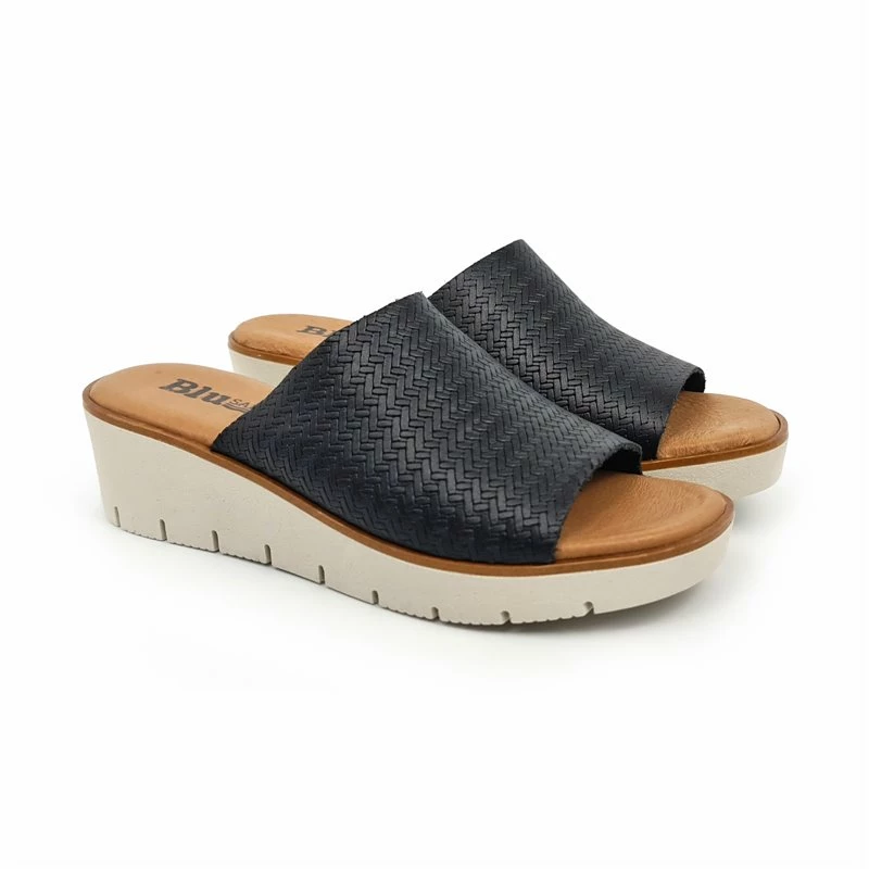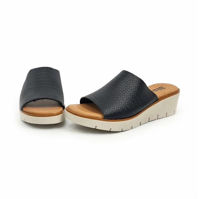 Zuecos Cuña Baja Mujer Piel Grabada Punta Abierta Plantilla Acolchada 22802 Negro, de Blusandal